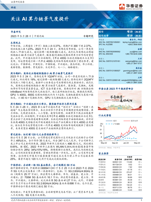 【华泰证券】【20230528】20230528-华泰证券-科技专题研究:关注AI算力链景气度提升-20页 行业研究