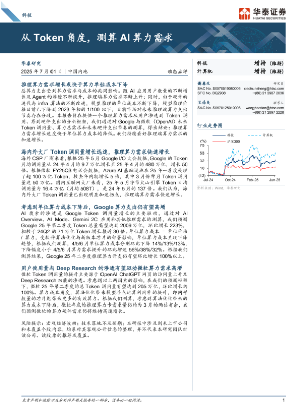 【华泰证券】【20250701】科技行业动态点评:从Token角度,测算AI算力需求-17页 行业研究
