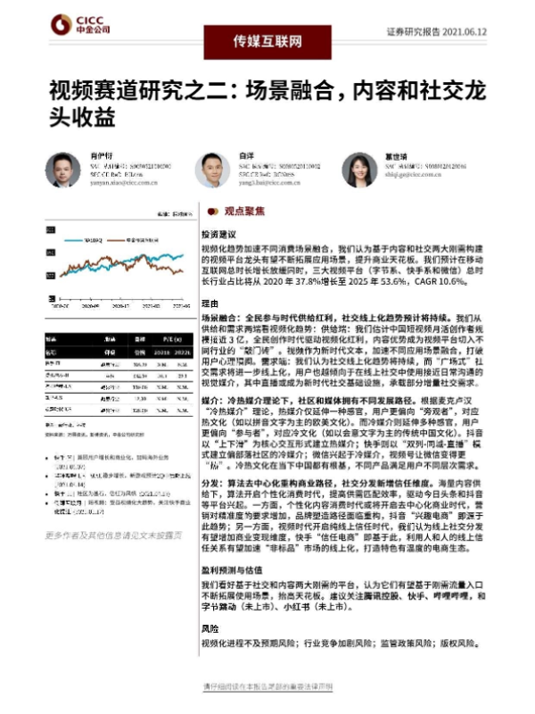【中金公司】【20210612】视频赛道研究之二:场景融合,内容和社交龙头收益-33页 行业研究