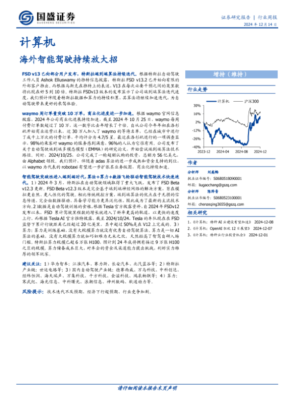 【国盛证券】【20241214】计算机行业周报:海外智能驾驶持续放大招-13页 行业研究