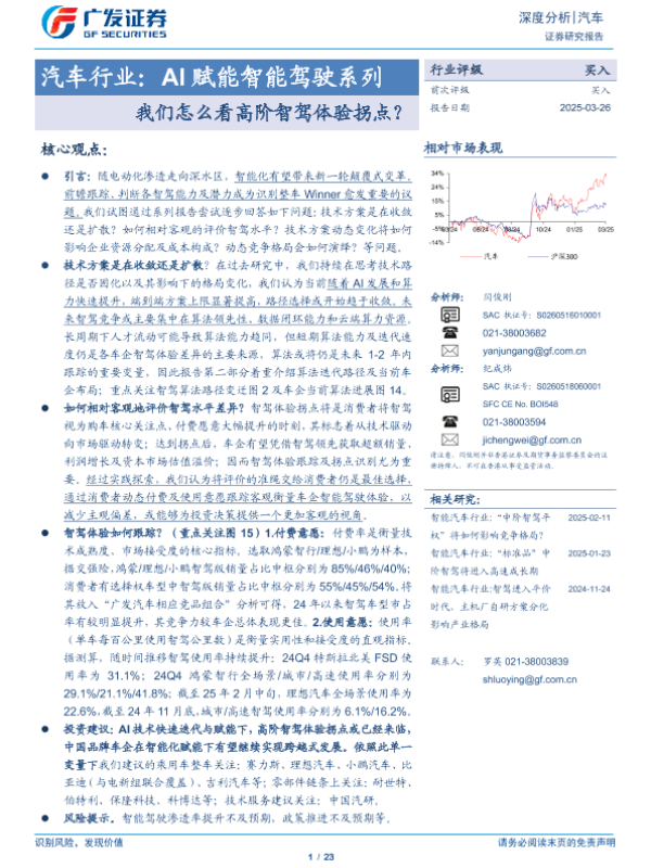 【广发证券】【20250326】汽车行业:AI赋能智能驾驶系列:我们怎么看高阶智驾体验拐点?-23页 行业研究
