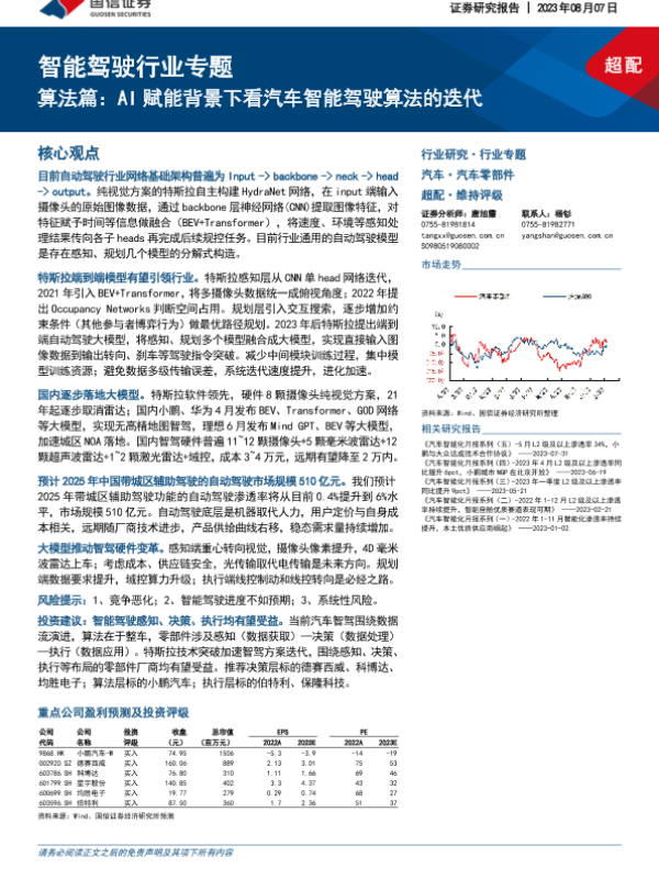 【国信证券】【20230807】智能驾驶行业专题:算法篇,AI赋能背景下看汽车智能驾驶算法的迭代-54页 行业研究