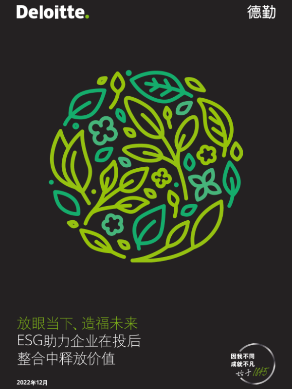 【德勤】【20221208】ESG助力企业在投后整合中释放价值-22页 白皮书