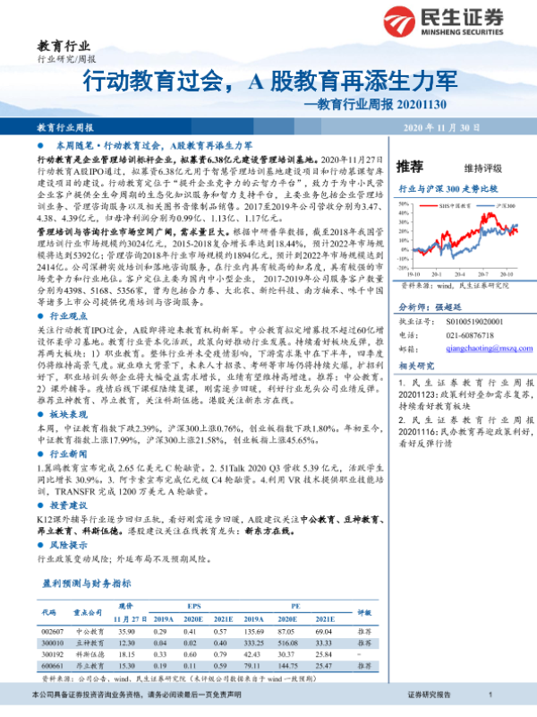 【民生证券】【20201130】20201130-民生证券-教育行业周报:行动教育过会,A股教育再添生力军-12页 行业研究