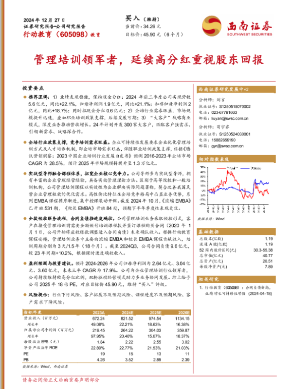 【西南证券】【20241227】行动教育-605098.SH-管理培训领军者,延续高分红重视股东回报-25页 行业研究
