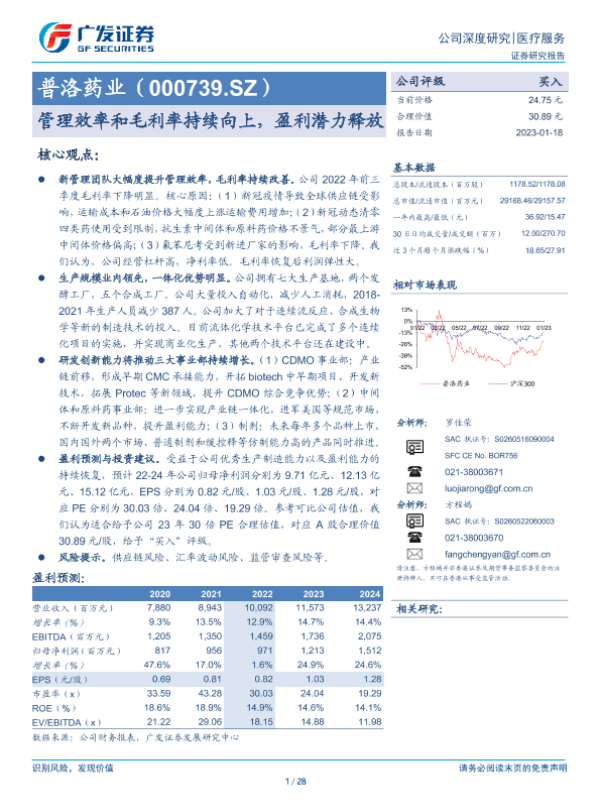 【广发证券】【20230118】普洛药业(000739.SZ)管理效率和毛利率持续向上,盈利潜力释放-28页 行业研究