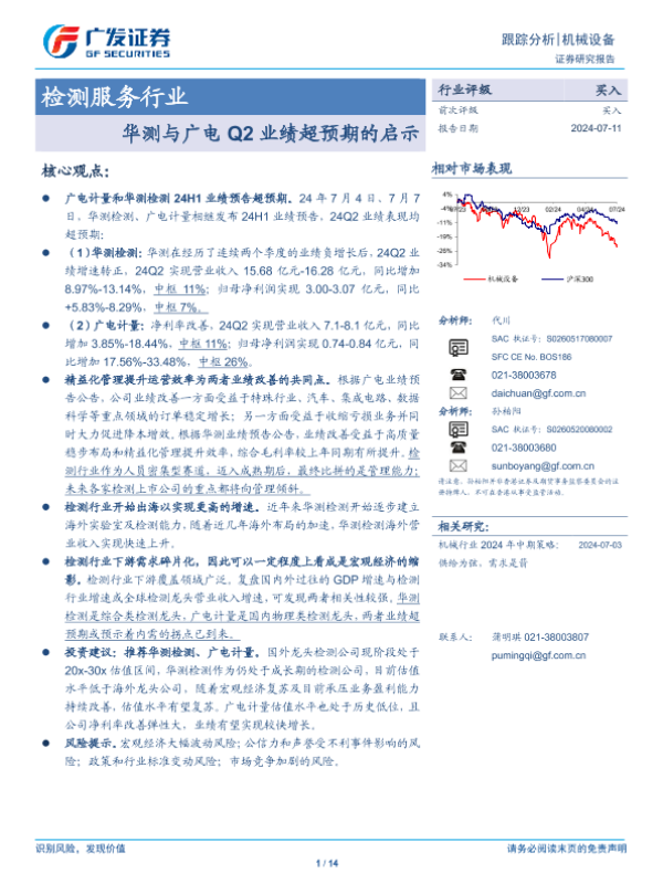 【广发证券】【20240711】20240711-广发证券-检测服务行业跟踪分析:华测与广电Q2业绩超预期的启示-14页 行业研究