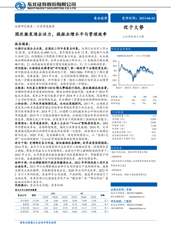 【东北证券】【20230602】食品饮料行业深度报告:国改激发酒企活力,提振业绩水平与管理效率-35页 行业研究