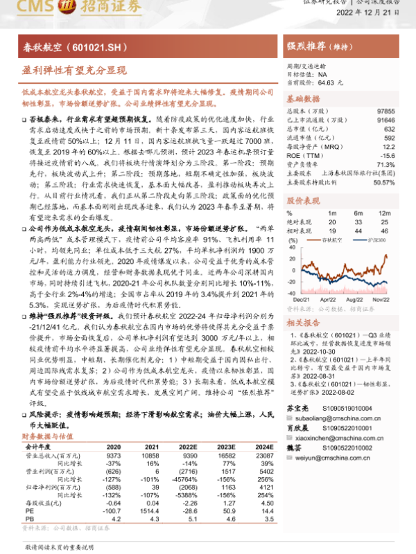 【海通证券】【20221221】春秋航空-601021.SH-盈利弹性有望充分显现-19页 公司研究