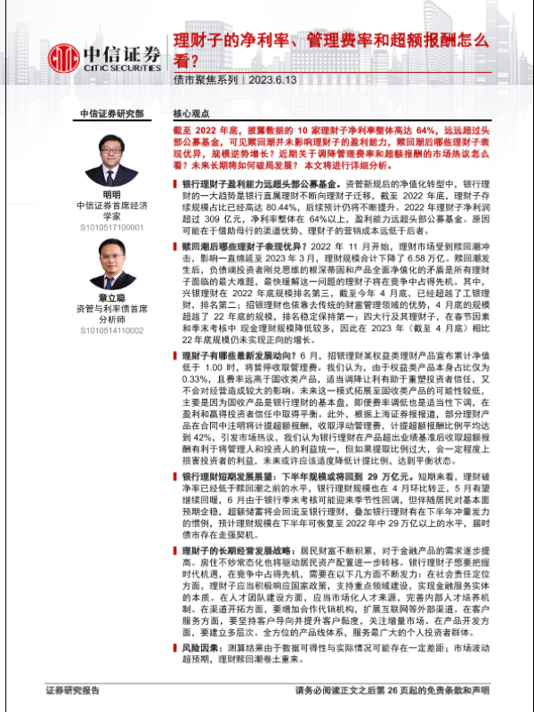 【中信证券】【20230613】理财子的净利率、管理费率和超额报酬怎么看?-22页 行业研究