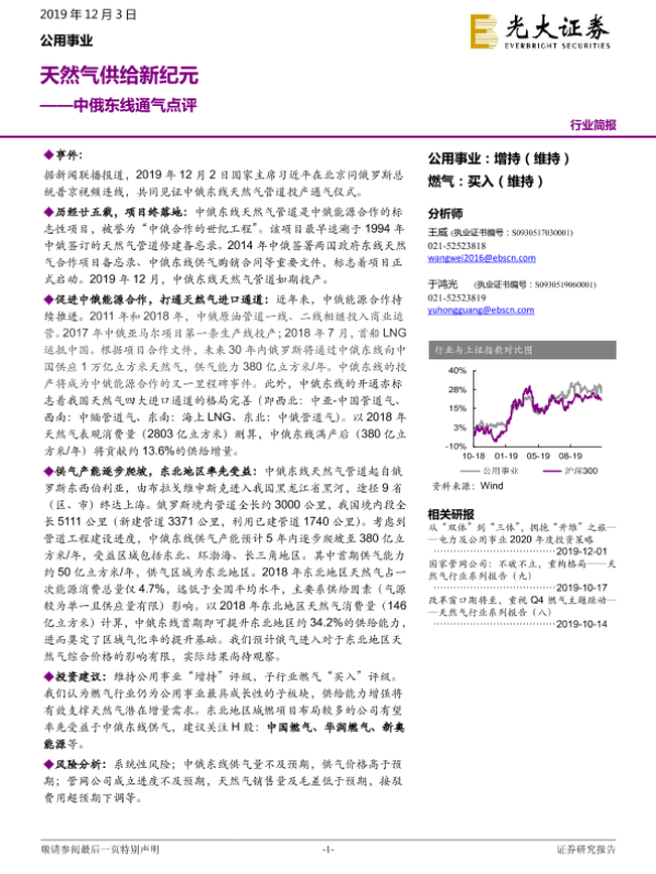 【光大证券】【20191203】中俄东线通气点评:天然气供给新纪元-4页 行业研究