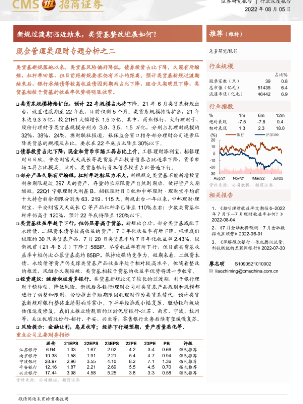 【海通证券】【20220805】银行业现金管理类理财专题分析之二:新规过渡期临近结束,类货基整改进展如何?-16页 行业研究