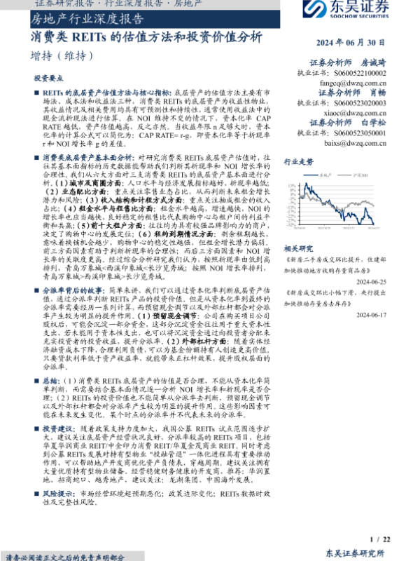 【东吴证券】【20240630】2024-07-01-房地产行业深度报告-消费类REITs的估值方法和投资价值分析-22页 行业研究