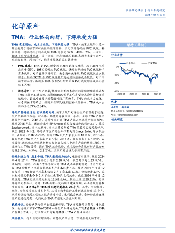 【国盛证券】【20240419】化学原料行业专题研究:TMA,行业格局向好,下游承受力强-11页 行业研究
