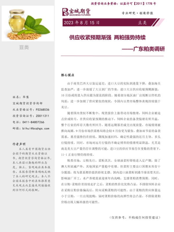 【宝城期货】【20230815】广东粕类调研_供应收紧预期渐强_两粕强势持续-13页 市场调研