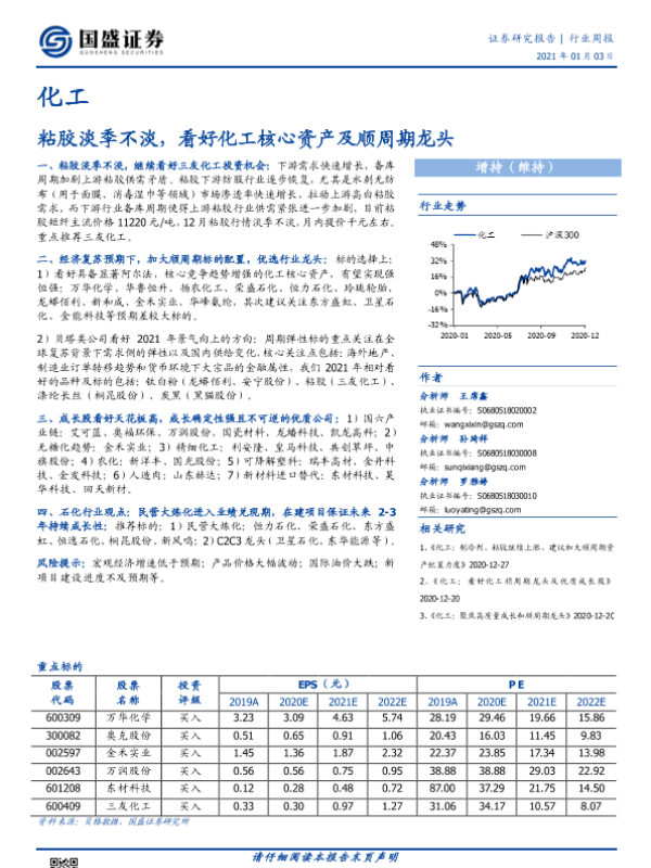 【国盛证券】【20210103】20210103-国盛证券-化工行业周报:粘胶淡季不淡,看好化工核心资产及顺周期龙头-9页 行业研究