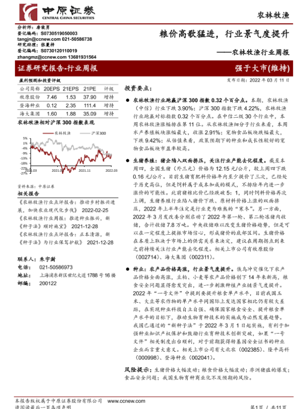 【中原证券】【20220311】20220311-中原证券-农林牧渔行业周报:粮价高歌猛进,行业景气度提升-11页 行业研究