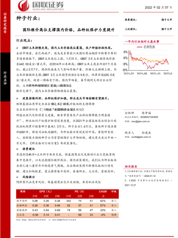 【国联证券】【20220207】种子行业:国际粮价高位支撑国内价格,品种权保护力度提升-2页 行业研究