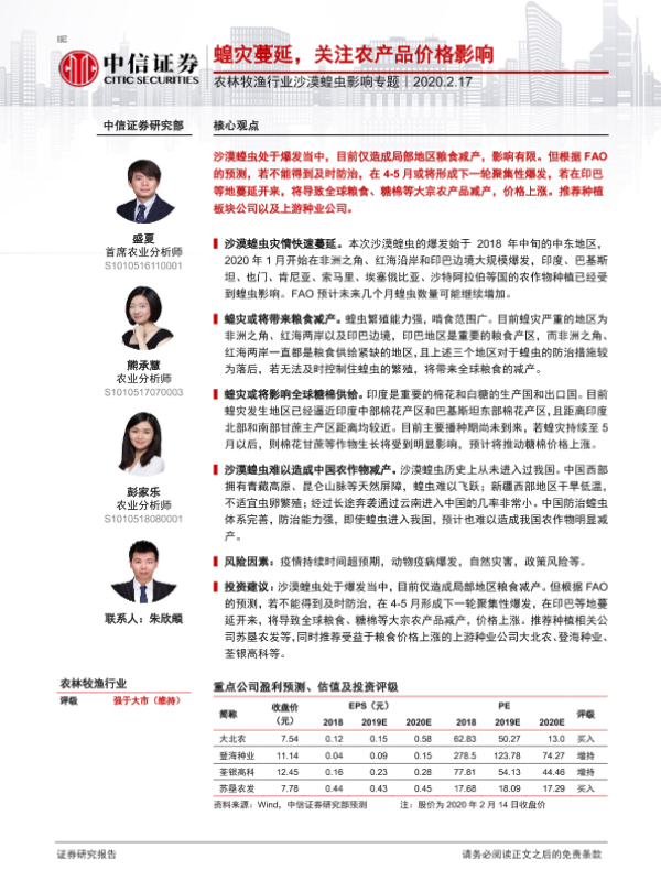 【中信证券】【20200217】农林牧渔行业沙漠蝗虫影响专题:蝗灾蔓延,关注农产品价格影响-12页 行业研究