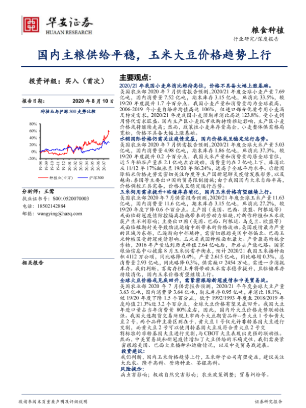 【华安证券】【20200810】20200810-华安证券-粮食种植深度报告:国内主粮供给平稳,玉米大豆价格趋势上行-46页 行业研究