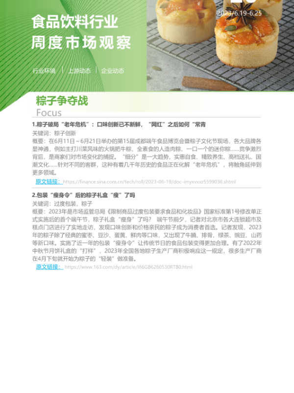 【艾瑞咨询】【20230625】2023年第26周:食品饮料行业周度市场观察-7页 行业研究