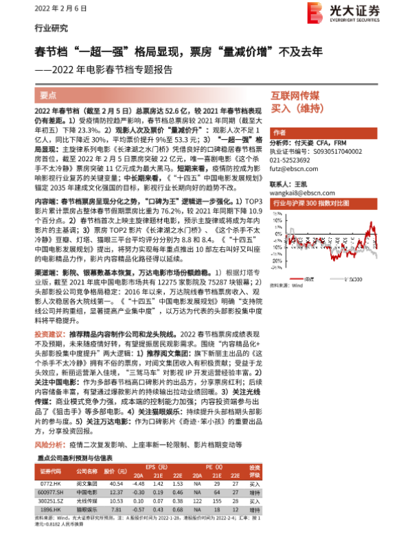 【光大证券】【20220206】2022年电影春节档专题报告:春节档“一超一强”格局显现,票房“量减价增”不及去年-10页 行业研究