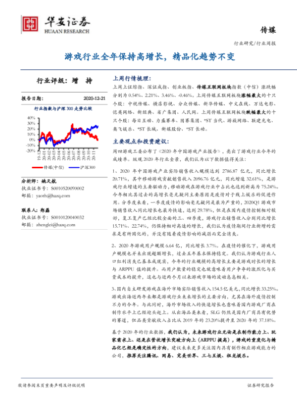 【华安证券】【20201221】20201221-华安证券-传媒行业周报:游戏行业全年保持高增长,精品化趋势不变-18页 行业研究