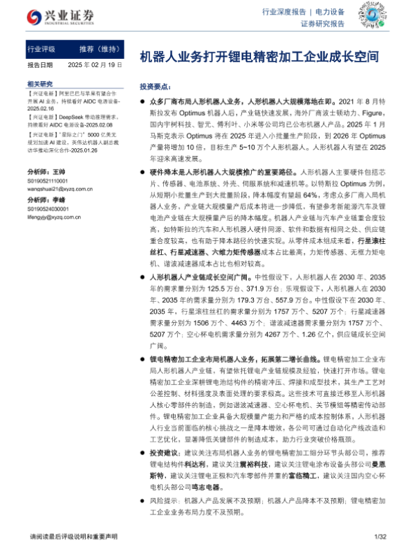 【兴业证券】【20250219】电力设备行业深度报告:机器人业务打开锂电精密加工企业成长空间-32页 行业研究