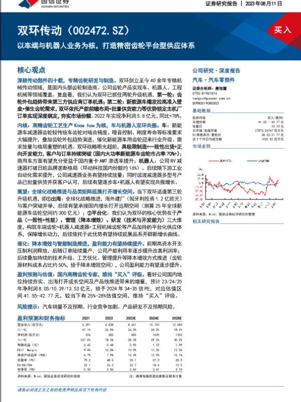 【国信证券】【20230811】双环传动(002472)以车端与机器人业务为核,打造精密齿轮平台型供应体系-59页 行业研究