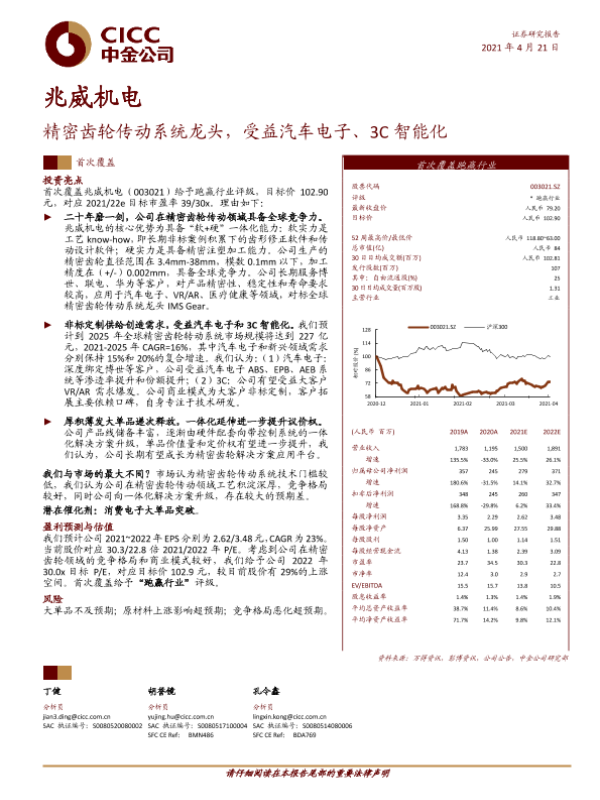 【中金公司】【20210421】20210421-中金公司-兆威机电-003021.SZ-精密齿轮传动系统龙头,受益汽车电子、3C智能化-29页 行业研究