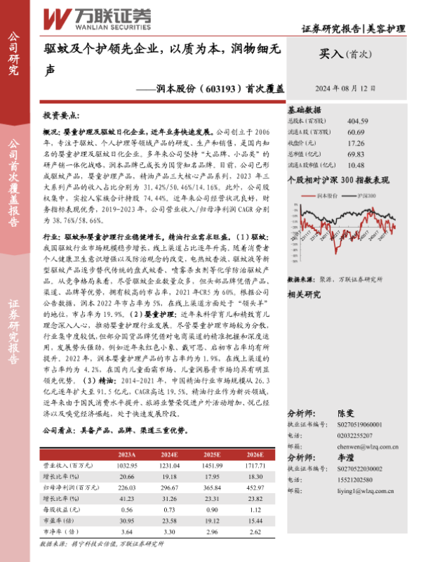【万联证券】【20240812】驱蚊及个护领先企业,以质为本,润物细无声-29页 行业研究