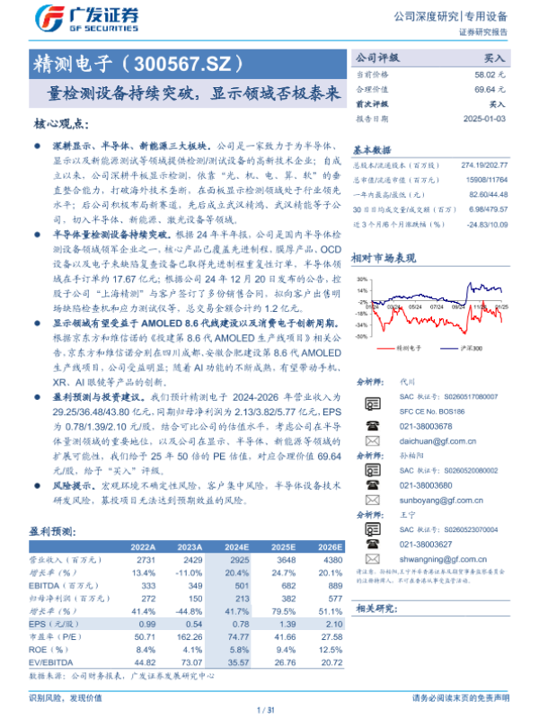 【广发证券】【20250103】精测电子(300567)量检测设备持续突破,显示领域否极泰来-31页 行业研究