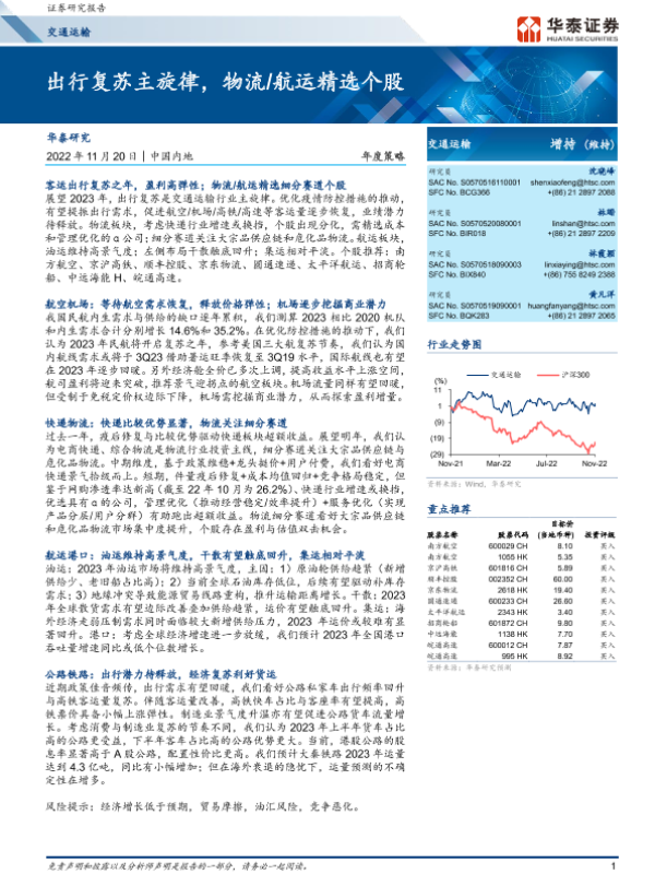 【华泰证券】【20221120】交通运输年度策略:出行复苏主旋律,物流航运精选个股-39页 行业研究
