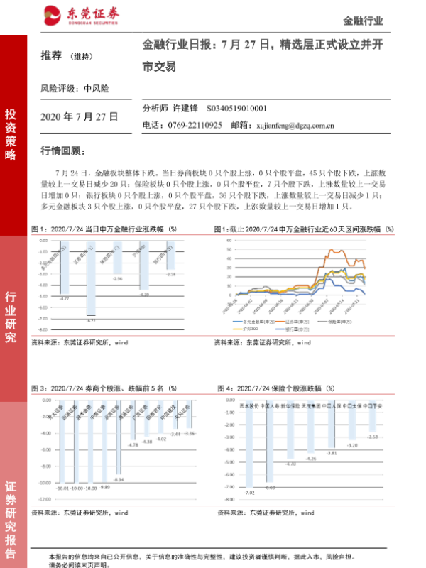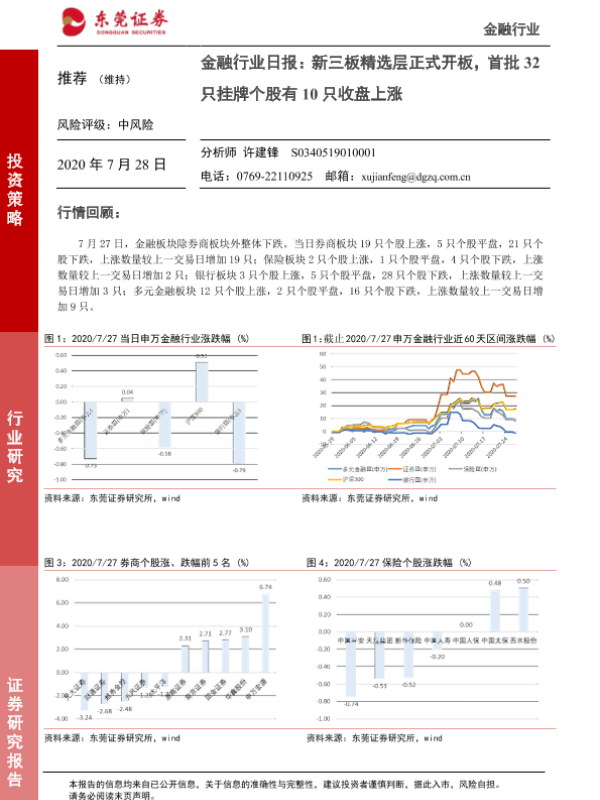 【东莞证券】【20200728】金融行业日报:新三板精选层正式开板,首批32只挂牌个股有10只收盘上涨-4页 行业研究