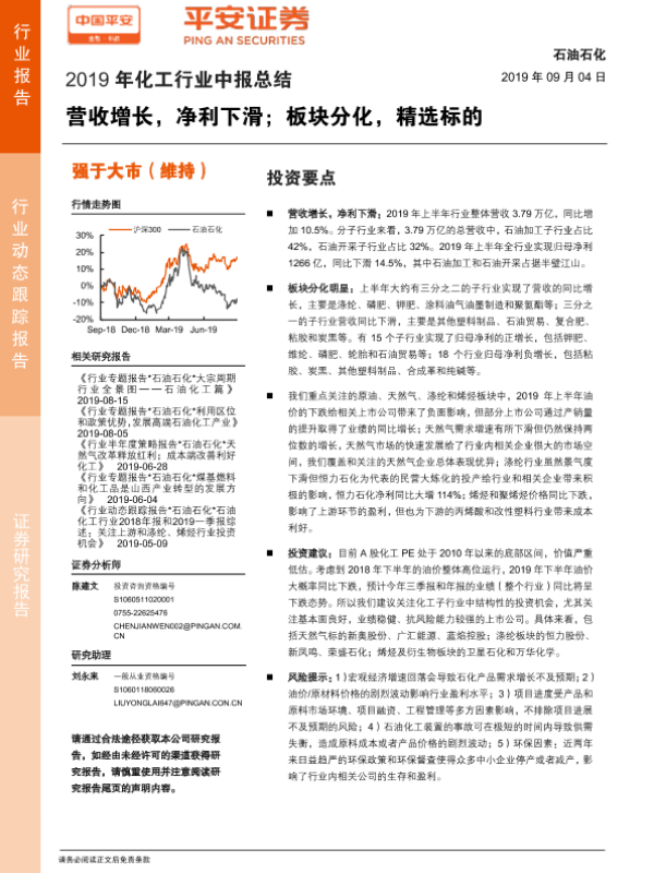 【平安证券】【20190904】2019年化工行业中报总结:营收增长,净利下滑;板块分化,精选标的-16页 行业研究