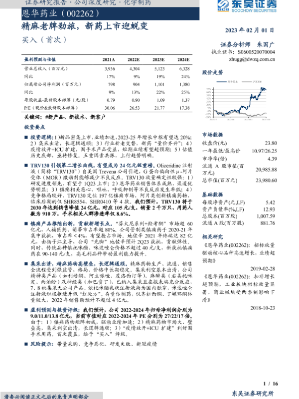 【东吴证券】【20230201】恩华药业-精麻老牌劲旅,新药上市迎蜕变-16页 行业研究