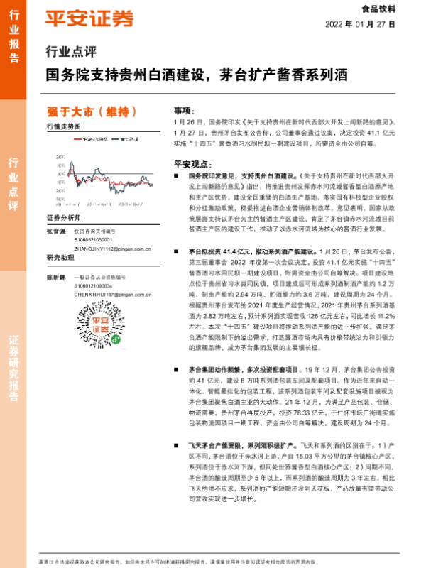 【平安证券】【20220127】食品饮料行业点评:国务院支持贵州白酒建设,茅台扩产酱香系列酒-3页 行业研究