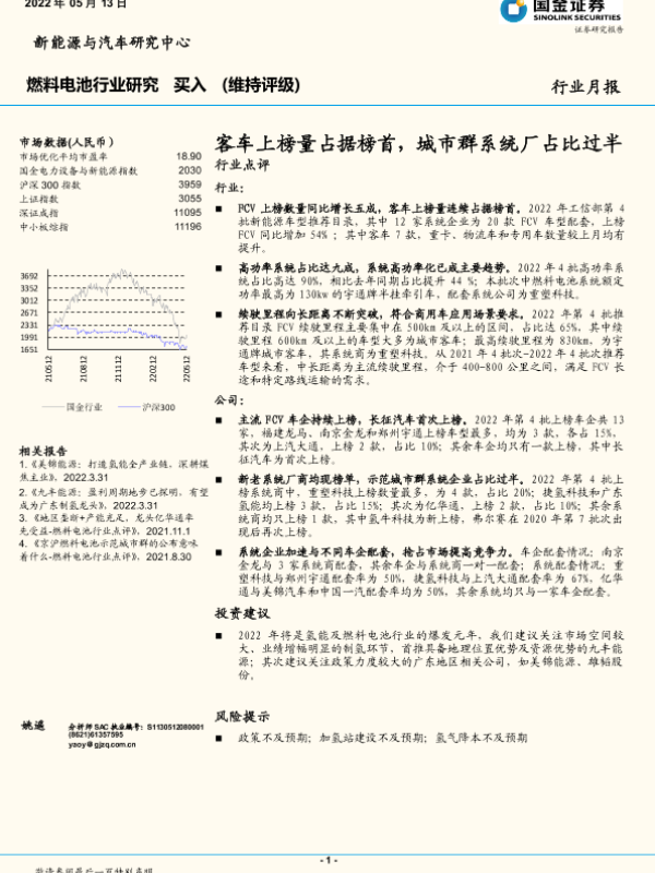 【国金证券】【20220513】燃料电池行业研究:客车上榜量占据榜首,城市群系统厂占比过半-7页 行业研究