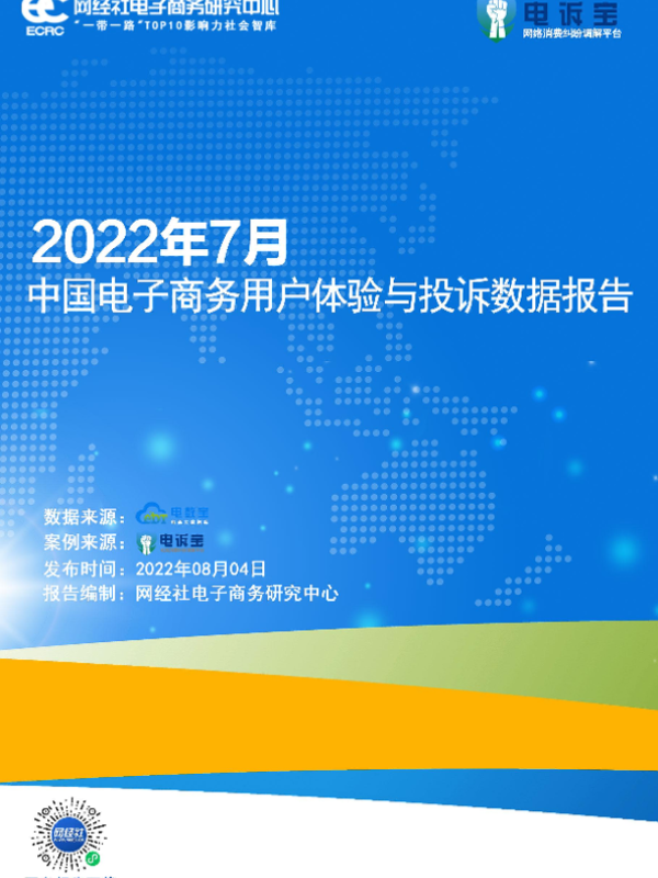 【网经社电子商务研究中心】【20220804】2022年7月中国电子商务用户体验与投诉数据报告-39页 市场调研