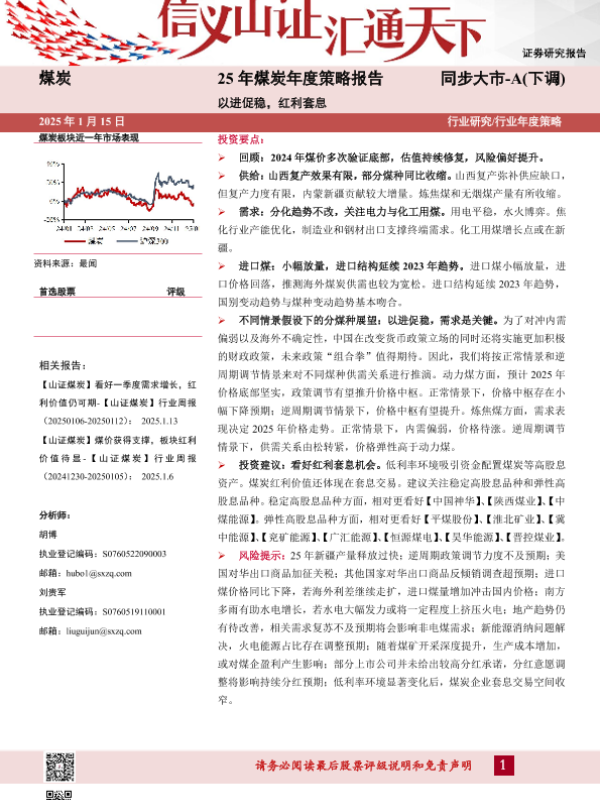 【山西证券】【20250115】25年煤炭年度策略报告:以进促稳,红利套息-30页 行业研究