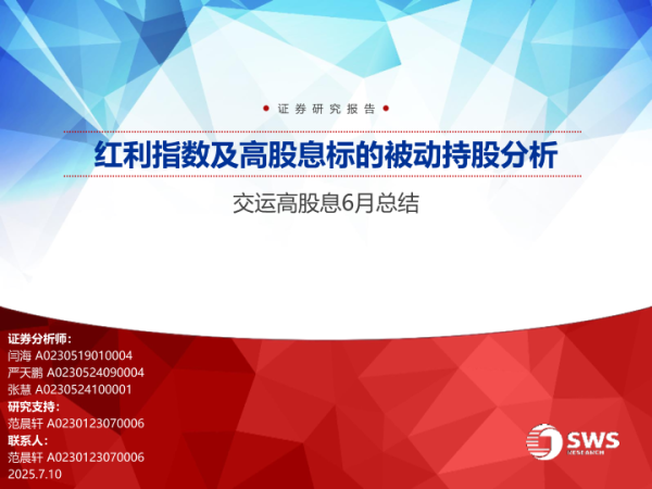【申万宏源】【20250710】交运行业高股息6月总结:红利指数及高股息标的被动持股分析-36页 证券期货研究报告