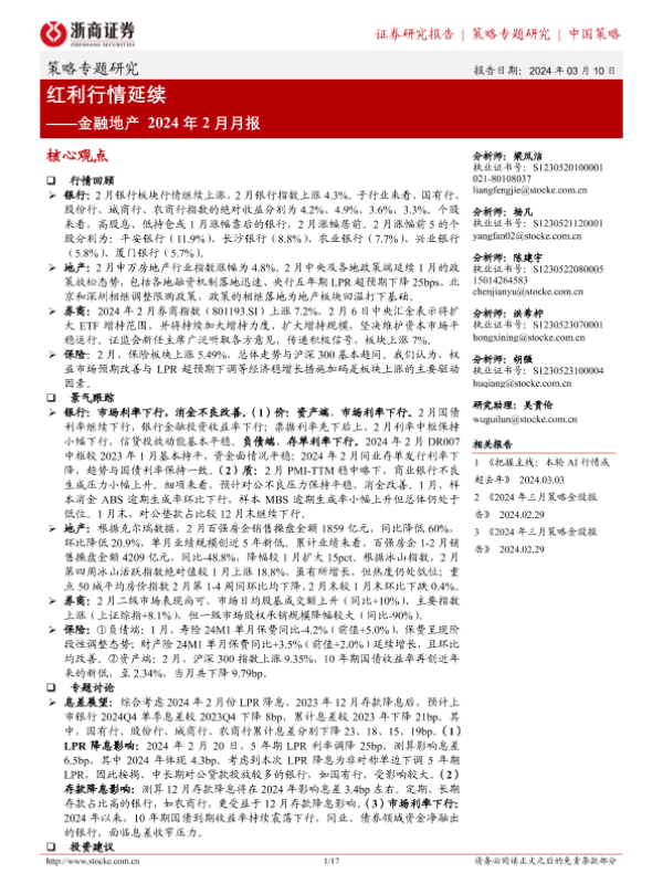 【浙商证券】【20240310】金融地产2024年2月月报:红利行情延续-17页 行业研究