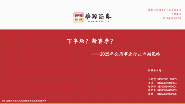 【华源证券】【202508】2025年公用事业行业中期策略:下半场?新赛季?-36页 证券期货研究报告
