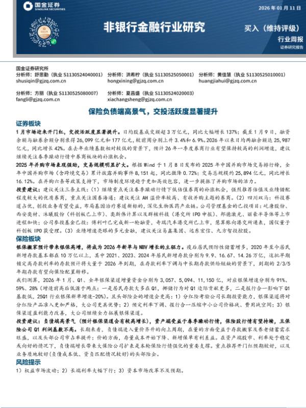 【国金证券】【202601】2026-01-12_国金证券_非银行金融行业研究:保险负债端高景气,交投活跃度显著提升-10页 证券期货研究报告