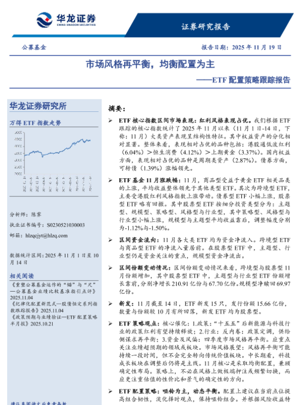 【华龙证券】【202511】市场风格再平衡,均衡配置为主——ETF配置策略跟踪报告-10页 证券期货研究报告