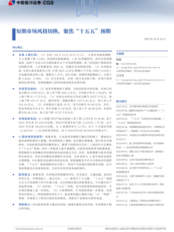 【银河证券】【202510】短期市场风格切换,聚焦“十五五”预期-11页 证券期货研究报告