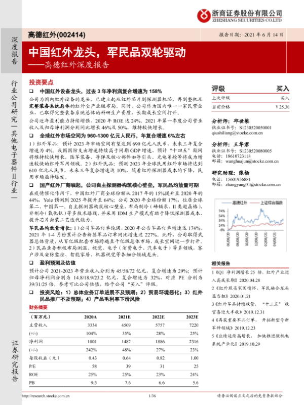 【浙商证券】【20210614】20210614-浙商证券-高德红外-002414.SZ-高德红外深度报告:中国红外龙头,军民品双轮驱动-36页 行业研究