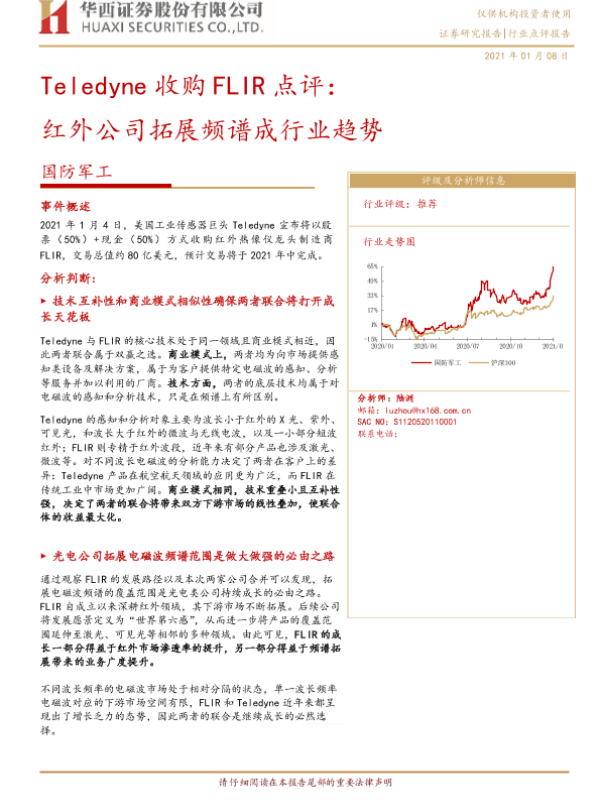 【华西证券】【20210108】Teledyne收购FLIR点评:红外公司拓展频谱成行业趋势-4页 证券期货研究报告