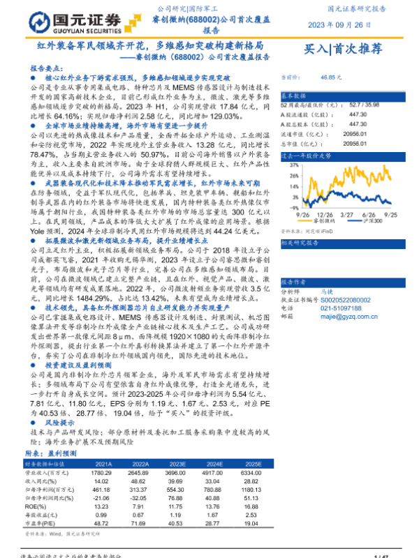 【国元证券】【20230926】睿创微纳-688002.SH-公司首次覆盖报告:红外装备军民领域齐开花,多维感知突破构建新格局-47页 行业研究