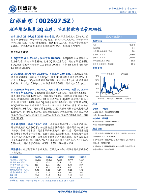 【国盛证券】【202510】税率增加拖累3Q业绩,降本提效彰显管理韧性-3页 证券期货研究报告